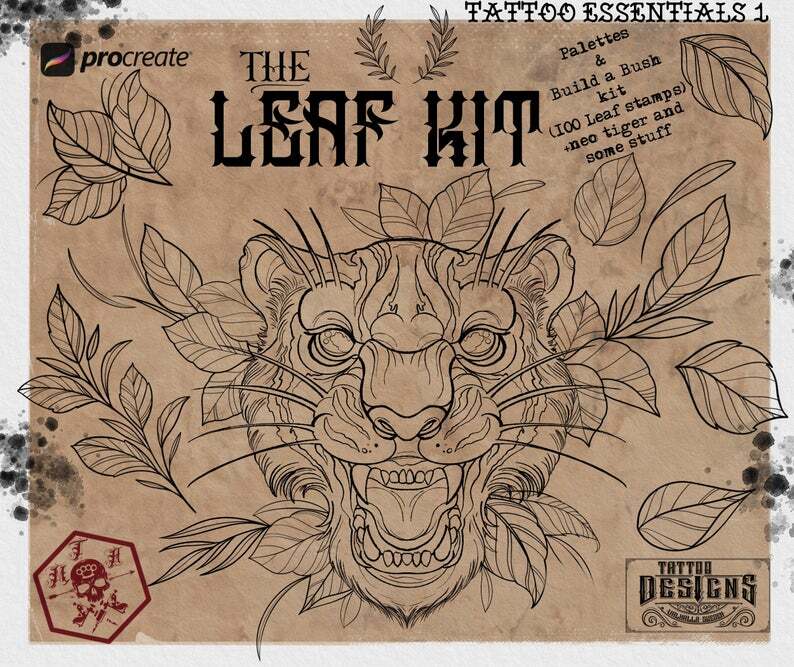 110+ leaves and leafy stuff 🤷♂️❤️🍃 collection for procreate, included the tiger and 2 Palettes for this kit, one nature/Leaf and one neo trad tiger set❤️🌿